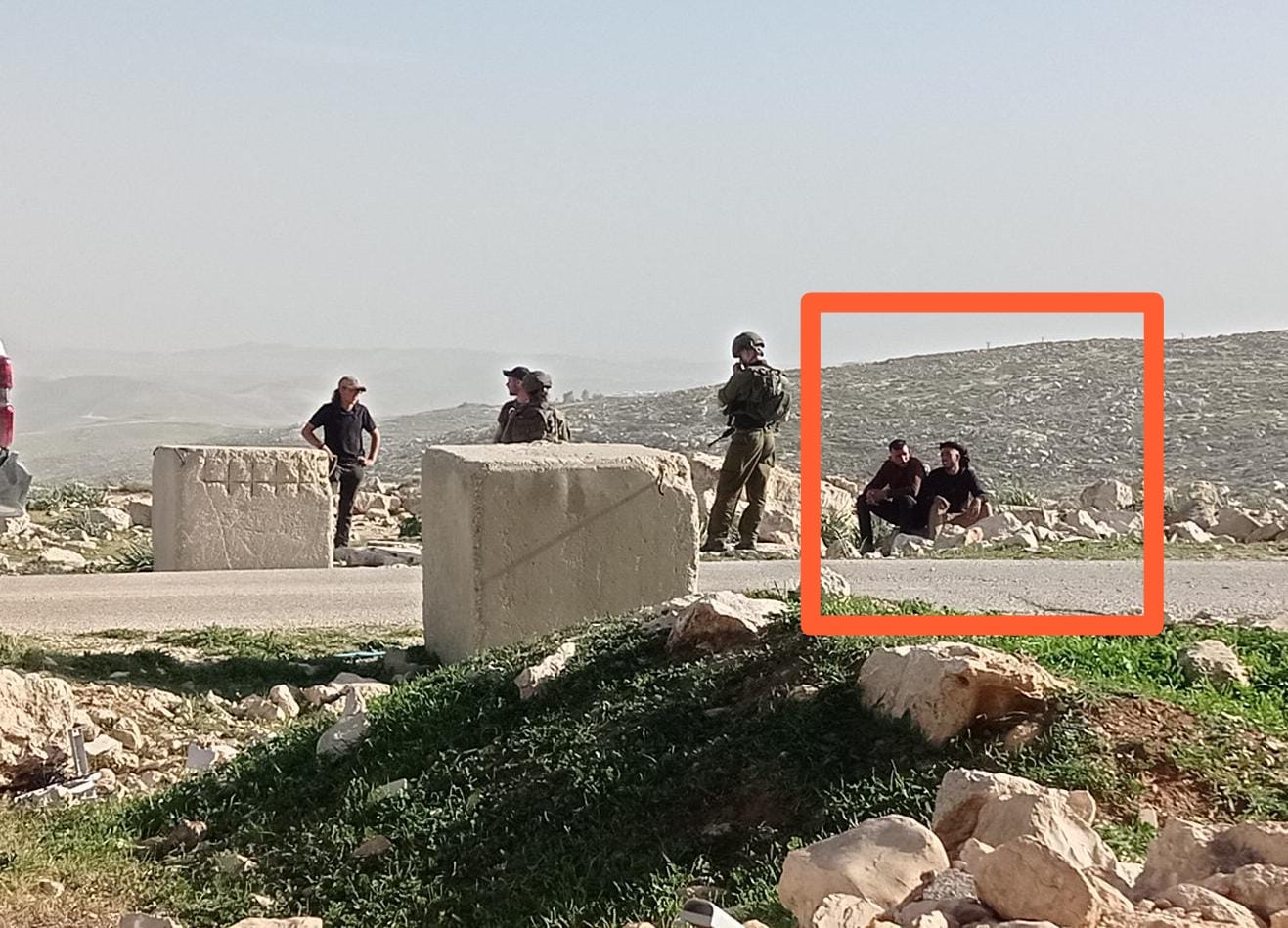 The armed settler in the photo below (to the right) was among those who summoned the occupation soldiers.