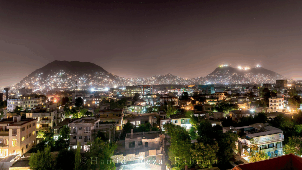 Kabul at night, 2016. (Danial, CC BY-SA 4.0, Wikimedia Commons)