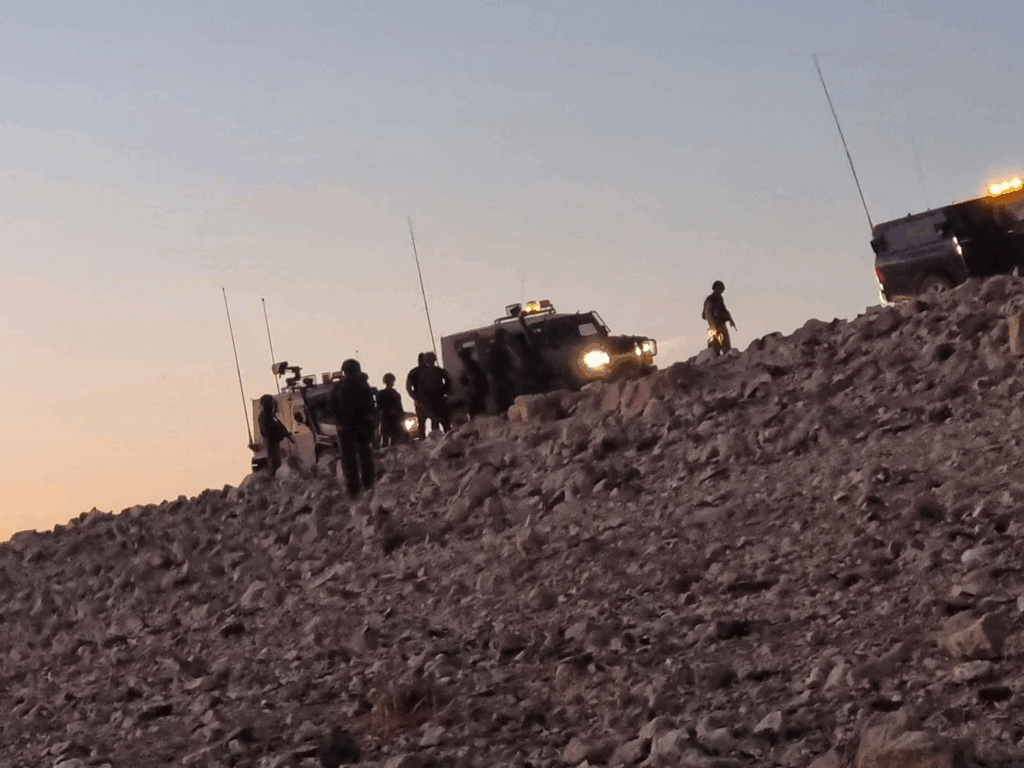 Text, 5 July, 11:15 p.m. EEST: “This evening, settler herders attacked the Deir Alla Bedouin community located southeast of Kisan with the support of the occupation forces, beating and shooting Palestinian residents. Three young men from the community were arrested, Aref Al-Abayat, Fadi Al-Abayat, and Yousef Al-Abayat. They were taken to an unknown location amid the fierce assault, which included attacks against the residents, their property, and livestock.”